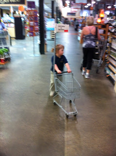 in the meantime here is a picture of my big girl shopping at Whole Foods - her new favorite grocery store given the discovery of the kid size shopping carts!